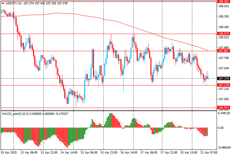 USD/JPY: пара торгуется со снижением с Y107.80 до Y107.30,