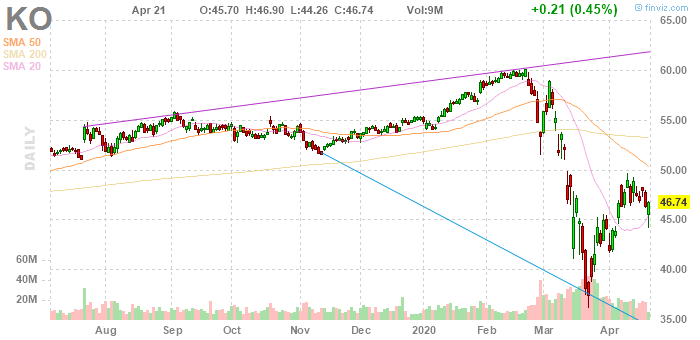 На текущий момент акции KO котируются по $46.74 (+0.45%).