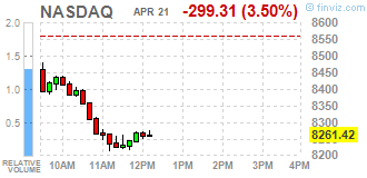 | Nasdaq 100 | 8392.75 | -299.25 | -3.44% |