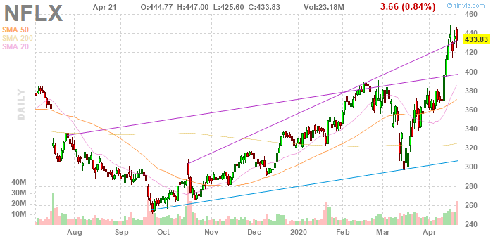 Согласно обнародованному отчету, прибыль компании Netflix (NFLX) по итогам первого квартала 2020 финансового года (ФГ) достигла $1.57 в расчете на одну акцию (против $0.63 на одну акцию в первом квартале 2019 ФГ), что оказалось ниже среднего прогноза аналитиков на уровне $1.64 на одну акцию.
