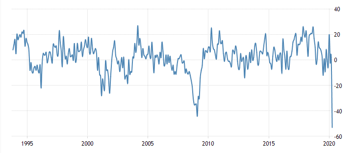 Данные показали, что производственный индекс ФРБ Ричмонда, который измеряет производственную активность в Пятом округе, резко упал в апреле - до -53 пунктов с 2 пункта в марте. Это было самое низкое чтение и самое большое падение за один месяц в истории. Экономисты ожидали снижение показателя до -42 пункта.