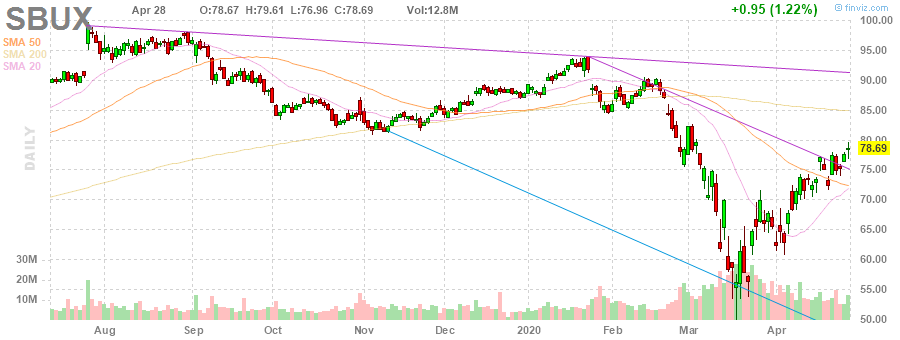 Акции SBUX на премаркете снизились до уровня $77.30 (-1.77%).