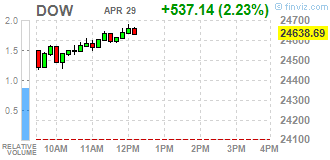 | Dow | 24533.00 | +488.00 | +2.03% |
