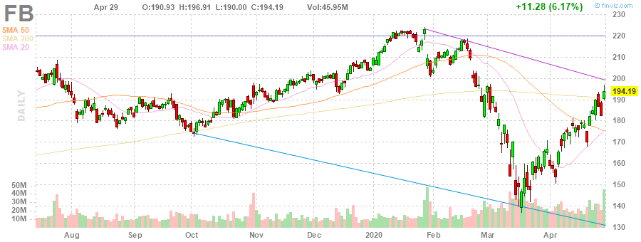 Facebook не предоставила конкретный прогноз выручки из-за неопределенности, связанной с COVID-19 и его влиянием на экономику. Тем не менее, компания отметила, что в первые три недели апреля она наблюдала признаки стабильности, когда выручка была примерно без изменений г/г, по сравнению с +17% г/г в первом квартале в 2020 ФГ.
