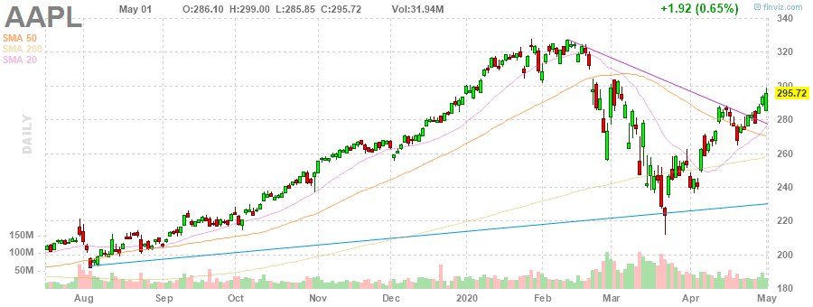 В Apple также сообщили, что продолжат выкупать свои акции в условиях пандемии. Компания утвердила увеличение на $50 млрд. своей действующей Программы обратного выкупа собственных акций, а также повысила дивиденды до $0.82/акцию. В 2019 финансовом году Apple потратила $67.1 млрд. на выкуп акций и $14.1 млрд. на выплату дивидендов.