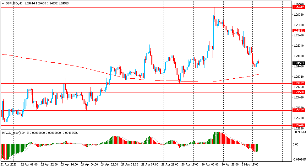 В пятницу пара GBP/USD торговалась с понижением и закрыла день в красной зоне около цены $1.2490. Сегодня пара также упала, опустившись к отметке $1.2440. Несмотря на снижение, на часовом графике GBP/USD все еще торгуется выше линии скользящей средней МА (200) Н1 ($1.2415). На четырехчасовом графике ситуация аналогичная. Исходя из вышесказанного, вероятно, стоит придерживаться северного направления в торговле и пока пара остается выше MA 200 H1, необходимо искать точки входа на покупку на окончание коррекции.