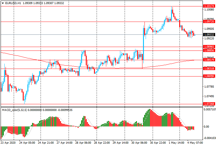 ЕUR/USD: пара торгуется со снижением, полностью утратив набранные в пятницу позиции. В пятницу пара выросла с $1.0935 до месячного максимума $1.1020.