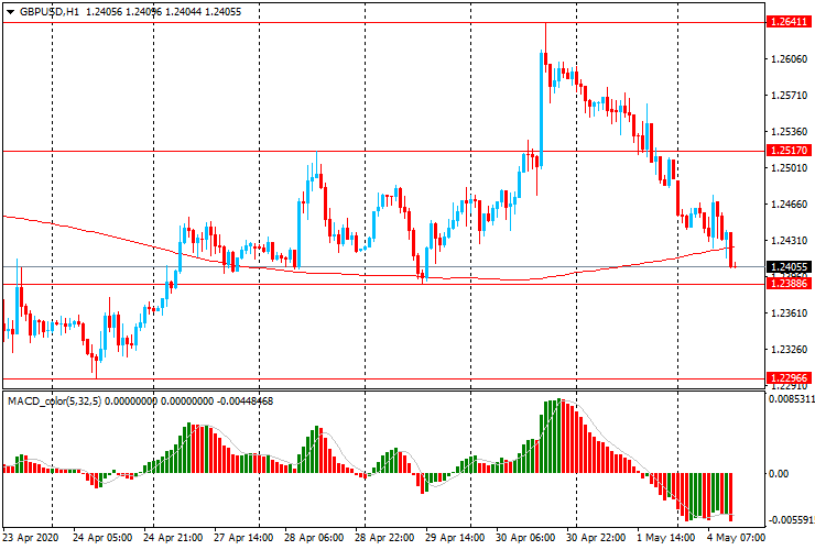 GBP/USD: пара продолжает пятничное снижение, опустившись до уровня $1.2405, после роста на прошлой неделе в четверг с $1.2425 до двухнедельного максимума $1.2640.