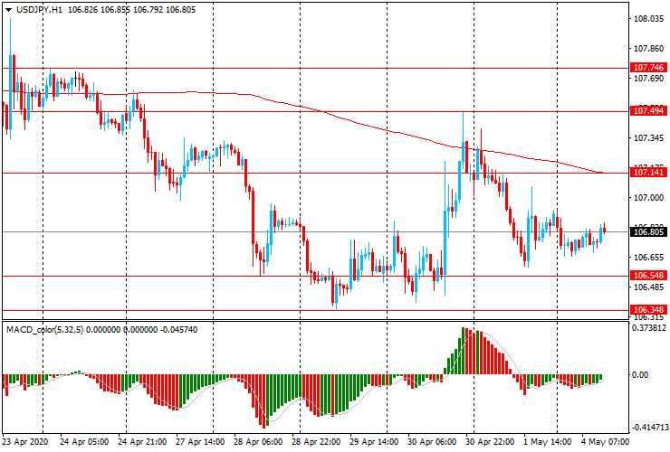 USD/JPY: пара торгуется в диапазоне Y106.65-95, после снижения в пятницу с Y107.40 до Y106.60.