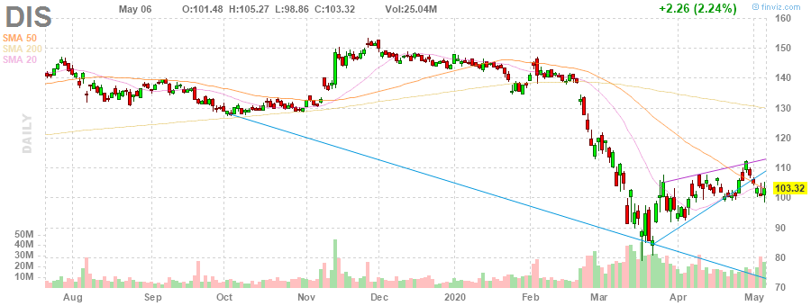 На текущий момент акции DIS котируются по $103.32 (+2.24%).
