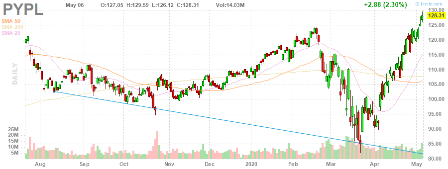 Акции PYPL на премаркете выросли до уровня $138.00 (+7.55%).