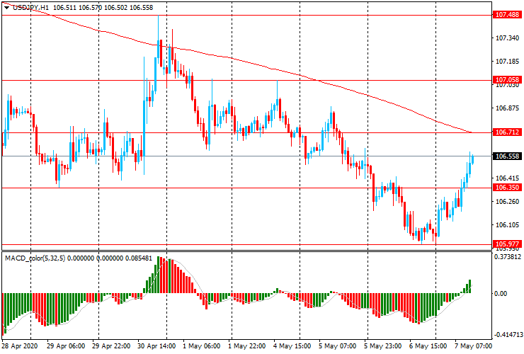 USD/JPY: пара торгуется с ростом, отступив от семинедельного минимума Y106.00, достигнутого вчера. На момент написания статьи пара выросла к Y106.55.