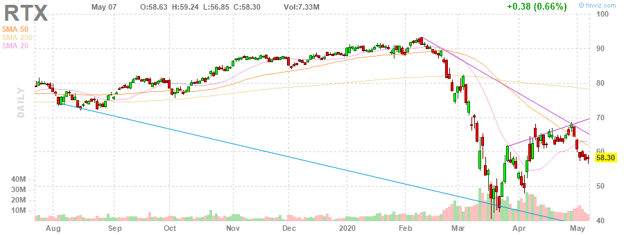 Акции United Technologies еще до слияния падали вместе со всеми другими акциями компаний, связанных с коммерческой авиационно-космической техникой. Около двух третей мирового флота реактивных воздушных судов не оперируют, потому что мало людей летают из-за коронавируса. Это ударило по акциям сектора. Акции поставщиков аэрокосмической техники, в том числе компании Raytheon/United Technologies, упали в среднем на 45% с начала года.