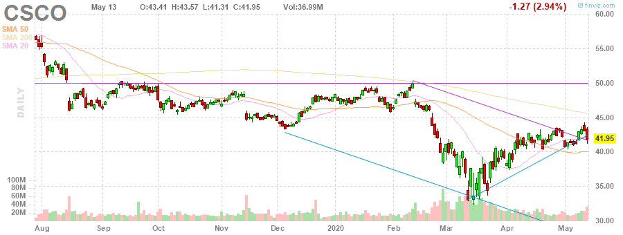 Акции CSCO на премаркете выросли до уровня $43.21 (+3.00%).