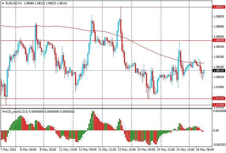 ЕUR/USD: пара торгуется в основном со снижением в диапазоне $1.0800-25