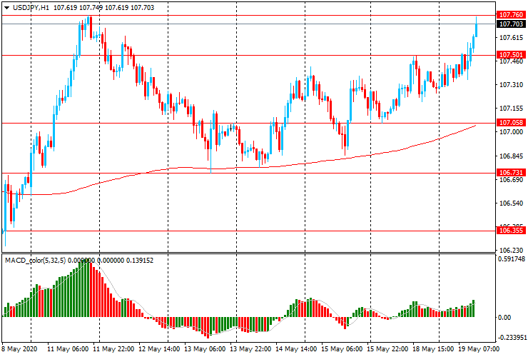 USD/JPY: пара торгуется с ростом, достигнув максимума 11 мая (Y107.75)