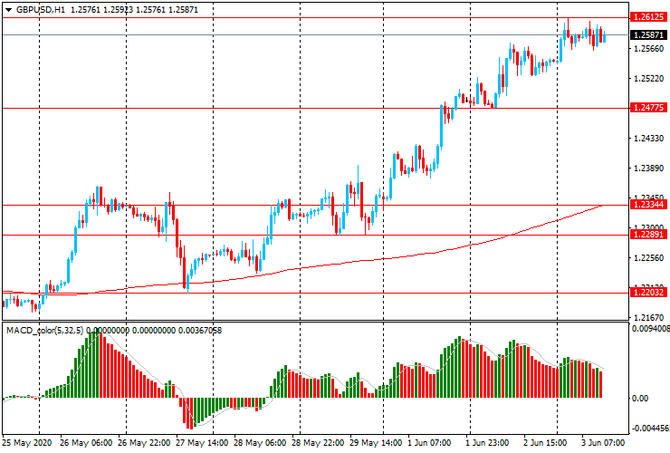 GBP/USD: пара продолжает торговаться с ростом в диапазоне $1.2545-1.2610, достигнув месячного максимума.