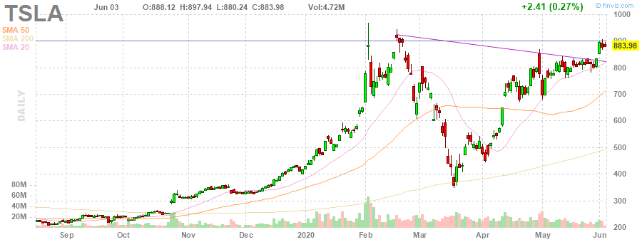 На текущий момент акции TSLA котируются по $883.98 (+0.27%).