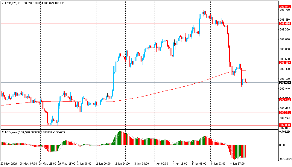 Вчера пара USD/JPY торговалась с резким понижением и закрыла день в красной зоне около цены Y108.40. Сегодня пара также немного упала, опустившись к отметке Y107.90. На часовом графике USD/JPY тестирует на прочность поддержку - линию скользящей средней МА (200) Н1 (Y108.35). На четырехчасовом графике пара пока остается выше линии MA 200 H4. Исходя из вышесказанного, вероятно, стоит придерживаться северного направления в торговле и пока пара окончательно не закрепится выше MA 200 H1, необходимо искать точки входа на покупку на окончание коррекции.