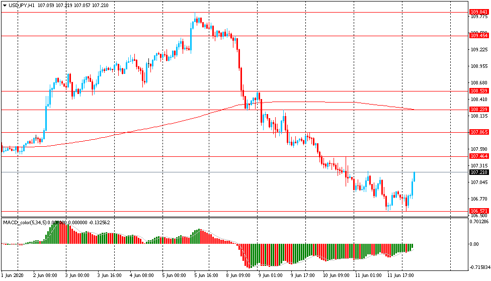 Вчера пара USD/JPY торговалась с понижением и закрыла день в красной зоне около цены Y106.75. Сегодня пара выросла, поднявшись к отметке Y107.20, немного отступив от 5-недельного минимума. На часовом графике USD/JPY все еще торгуется ниже линии скользящей средней МА (200) Н1 (Y108.20). На четырехчасовом графике ситуация аналогичная. Исходя из вышесказанного, вероятно, стоит придерживаться южного направления в торговле и пока пара остается ниже MA 200 H1, необходимо искать точки входа на продажу на формирование коррекции.