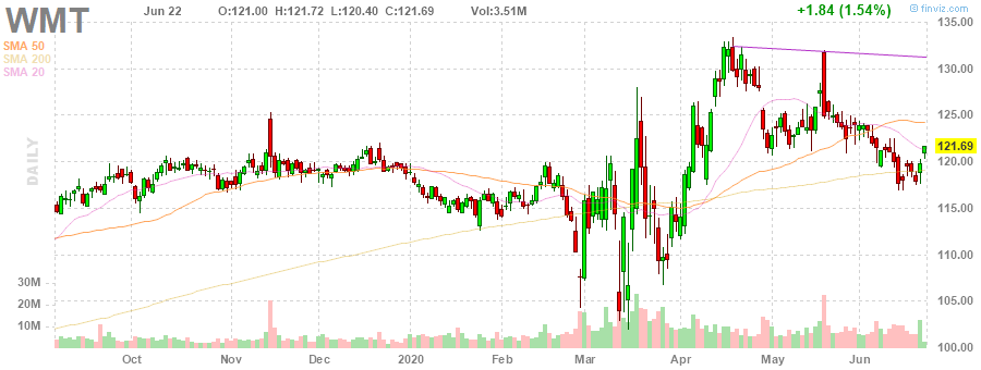 На текущий момент акции WMT котируются по $121.69 (+1.54%).