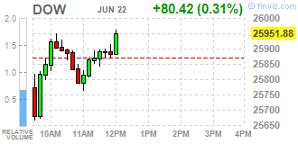 Большинство компонентов DOW в минусе (20 из 30). Аутсайдер - Walgreens Boots Alliance (WBA; -2.79%). Лидер роста - NIKE Inc. (NKE; +2.10%).