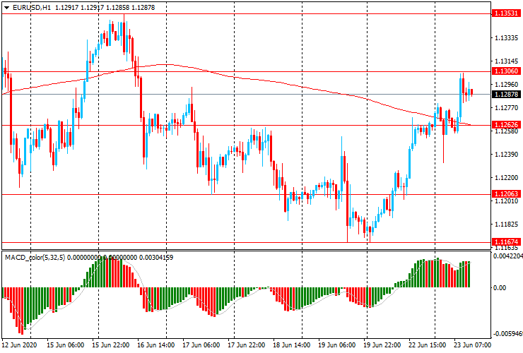 ЕUR/USD: после недолгого снижения с начала торгов до $1.1230, пара продолжила вчерашний рост, и выросла к $1.1305.