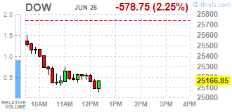 Все компоненты DOW в минусе (30 из 30). Аутсайдер - The Goldman Sachs Group (GS; -7.39%).