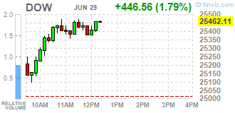 Почти все компоненты DOW в плюсе (28 из 30). Исключение - Cisco Systems Inc. (CSCO; -0.77%) и Intel Corp. (INTC; -0.05%). Лидер роста - The Boeing Co. (BA; +6.12%).