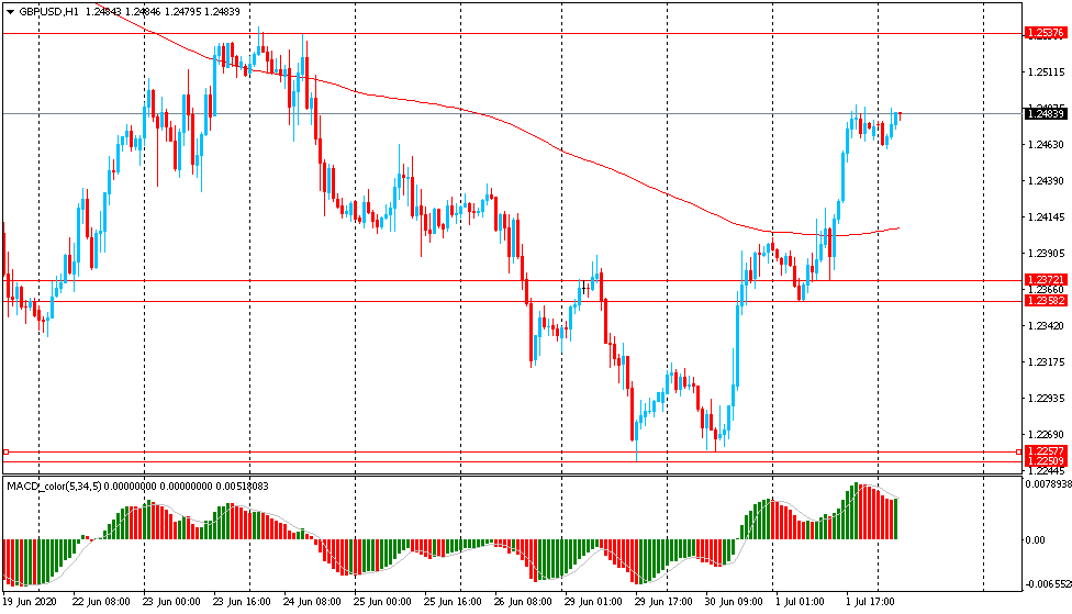 Доллар торговался сдержанно в ожидание завтрашней публикации данных по занятости в США. Ожидается, что в прошлом месяце число занятых в несельскохозяйственном секторе увеличится на 3 миллиона рабочих мест. Но оценки экономистов сильно разнятся. Поддерживают оптимизм опубликованные вчера данные. Институт управления поставками (ISM) сообщал, что экономическая активность в производственном секторе США выросла в июне к 14-ти месячному максимуму. Согласно данным, в июне производственный индекс вырос до 52,6 пункта, что оказалось на 9,5 процентных пункта выше майского показателя (43,1). Эта цифра указывает на рост экономики в целом второй месяц подряд после апрельского сокращения, которое завершило период роста в 131 месяц подряд. Аналогичные статданные из Китая, Германии и Франции также указали на улучшение производственной активности.