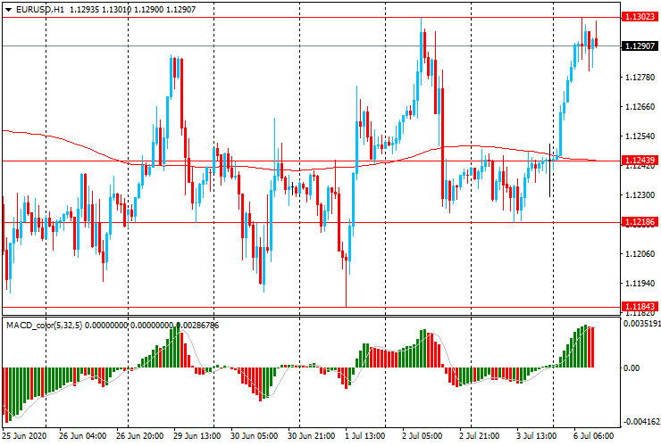 ЕUR/USD: пара торгуется с ростом с $1.1245 до $1.1300, достигнув максимума 2 июля.