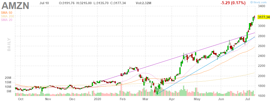 На текущий момент акции AMZN котируются по $3177.34 (-0.17%).