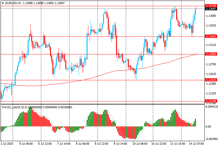 ЕUR/USD: в ходе азиатской сессии пара немного снизилась до $1.1325, но в течении европейских торгов резко выросла, достигнув вчерашнего максимума $1.1375.