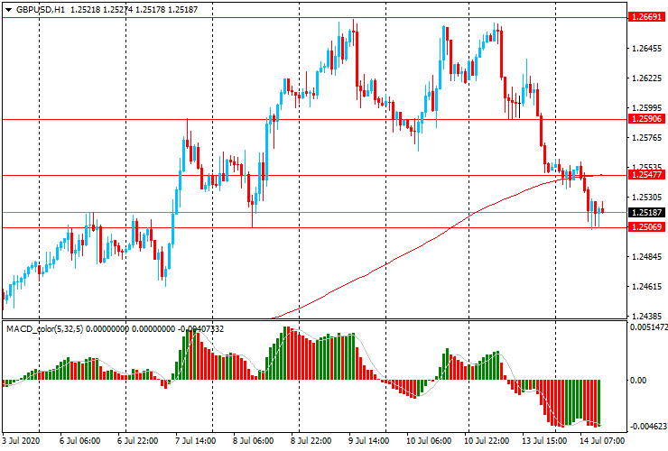 GBP/USD: пара продолжает вчерашнее снижение и опустилась к минимуму 8 июля ($1.2505)