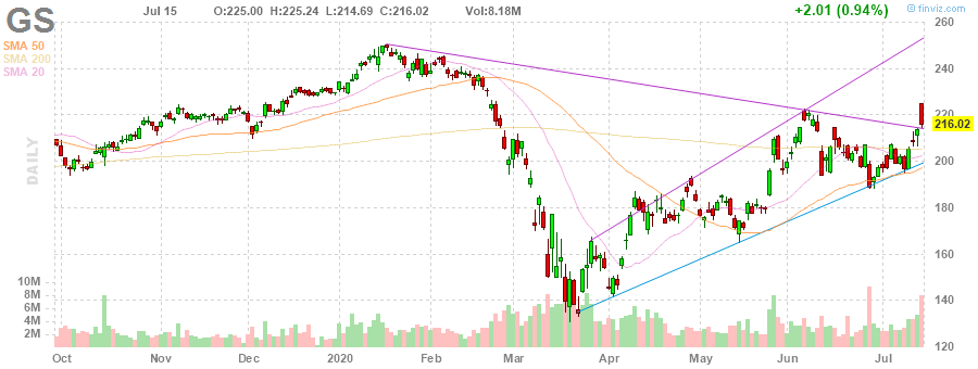 На текущий момент акции GS котируются по $216.02 (+0.94%).