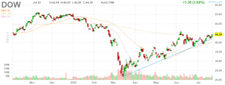 Акции DOW на премаркете выросли до уровня $45.04 (+1.58%).