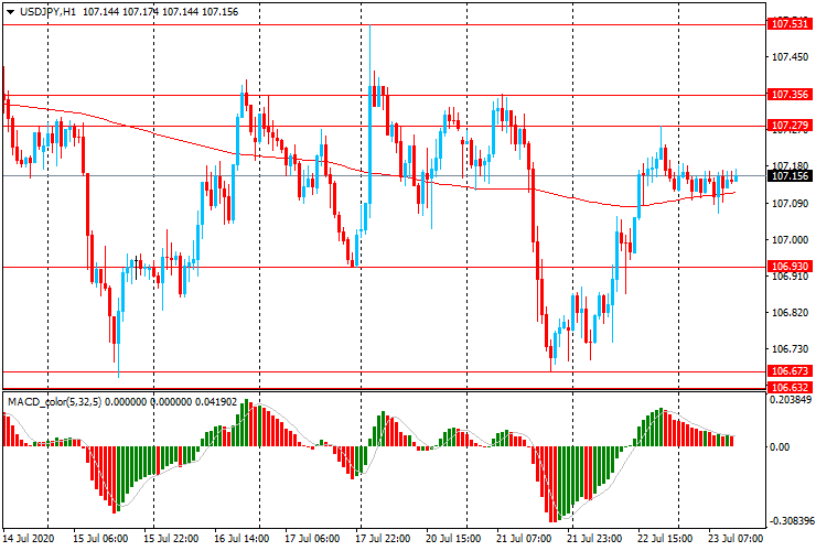 USD/JPY: пара торгуется в диапазоне Y107.05-20 и тестирует уровень скользящей средней MA (200) H1 (Y107.10), после роста вчера с недельного минимума Y106.70 до Y107.30.