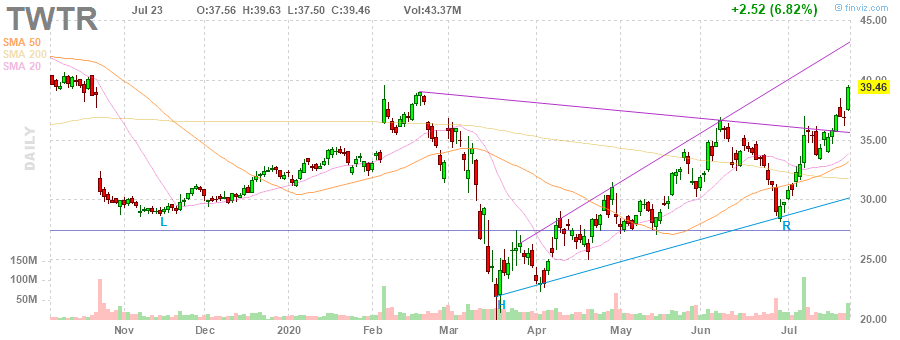 На текущий момент акции TWTR котируются по $39.46 (+6.82%).