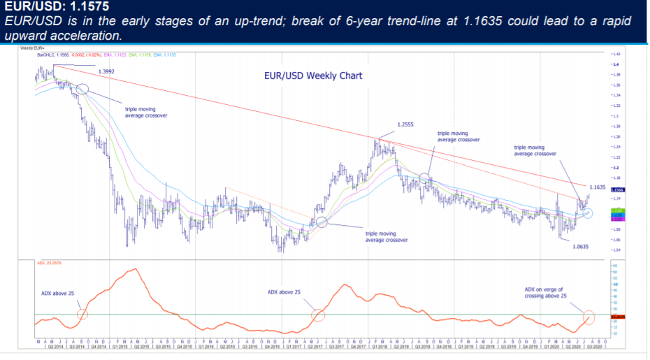 UOB Research обсуждает технический прогноз по EUR/USD и указывает на тройное пересечение скользящих средних на недельном графике.