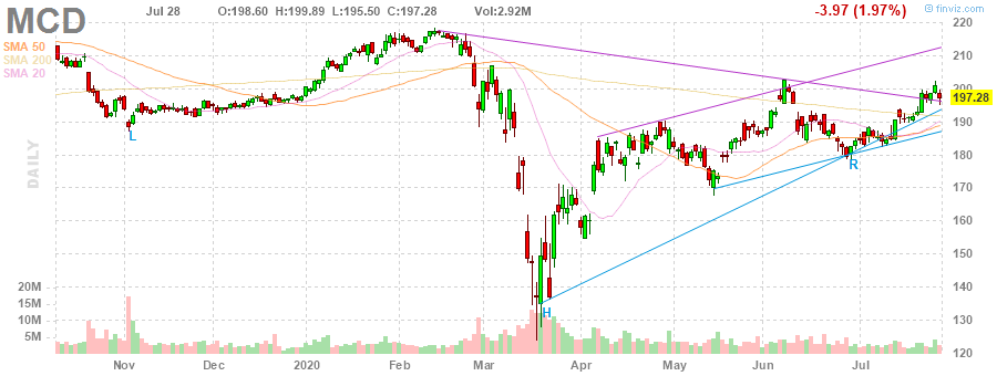 На текущий момент акции MCD котируются по $197.28 (-1.97%).