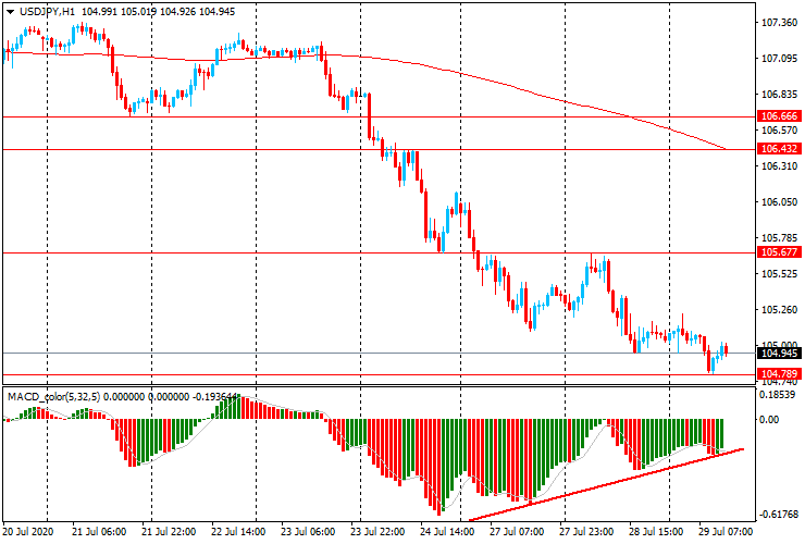 USD/JPY: пара снизилась до нового минимума с начала марта Y104.80, но позже немного выросла к Y105.00.