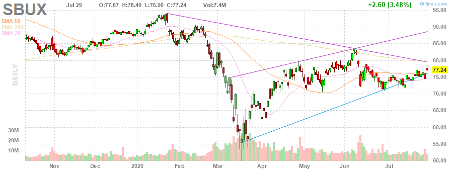 На текущий момент акции SBUX котируются по $77.24 (+3.48%).