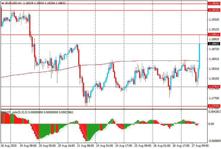 Доллар упал после того как председатель Федеральной резервной системы Джером Пауэлл представил новую агрессивную стратегию восстановления полной занятости в Соединенных Штатах и поднятия инфляции до более здорового уровня. Пара EUR/USD выросла с $1.1800 до $1.1900. Ближайшее сопротивление пары - $1.1950-65 (максимумы 18-19 августа). Сильный уровень поддержки - $1.1755-70 (минимумы 21 и 26 августа).