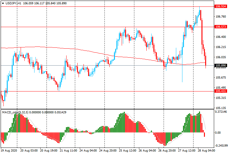 Пара USD / JPY продолжила снижаться после официального заявления Абе и сейчас держится около сессионных минимумов Y105.85.