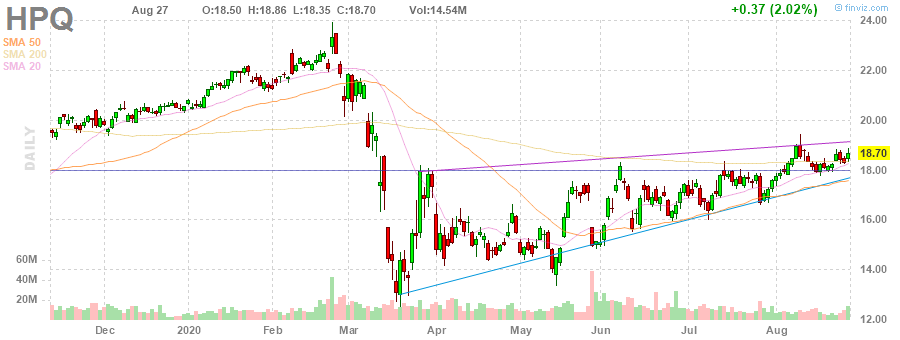 Акции HPQ на премаркете выросли до уровня $19.30 (+3.21%).