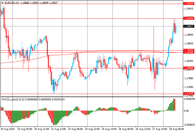 ЕUR/USD: пара торгуется с ростом ( с $1.1810 до $1.1920), достигнув недельного максимума.