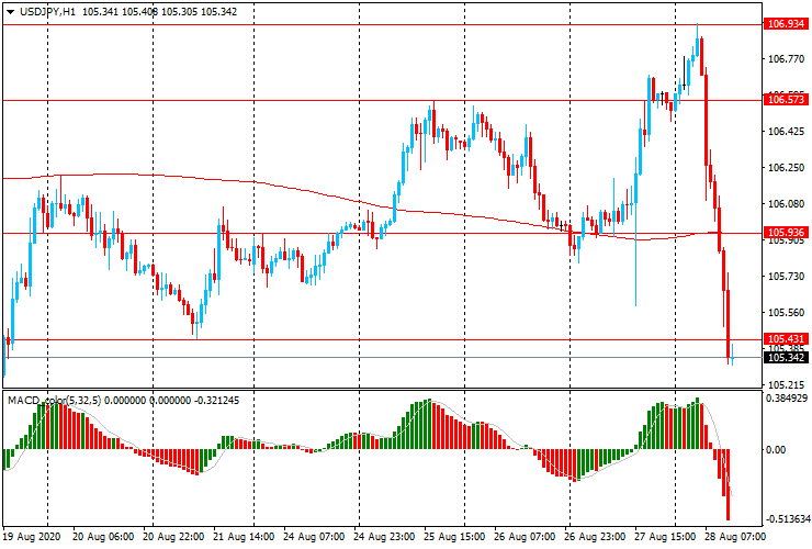 USD/JPY: после небольшого роста с начала торгов, пара резко снизилась с Y106.95 до более чем недельного минимума Y105.25.