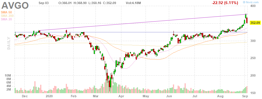 Согласно обнародованному отчету, прибыль компании Broadcom (AVGO) по итогам третьего квартала 2020 финансового года (ФГ) достигла $5.40 в расчете на одну акцию (против $5.16 на одну акцию в третьем квартале 2019 ФГ), что оказалось выше среднего прогноза аналитиков на уровне $5.24 на одну акцию.