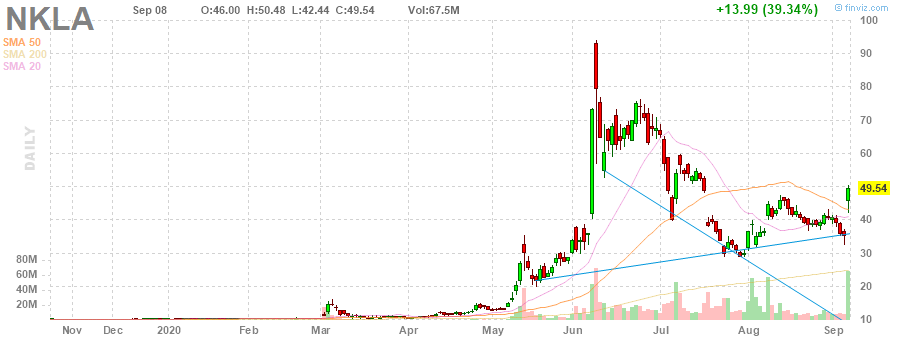 Как отмечает Эл Рут (Al Root), старший редактор Barron’s, компания Nikola Corp. (NKLA) шокировала Уолл-стрит во вторник, объявив о партнерстве с General Motors (GM). Акции пионера в области большегрузных автомобилей на альтернативном топливе выросли более чем на 30% в начале торгов во вторник, тогда как акции General Motors чувствовали себя неплохо.