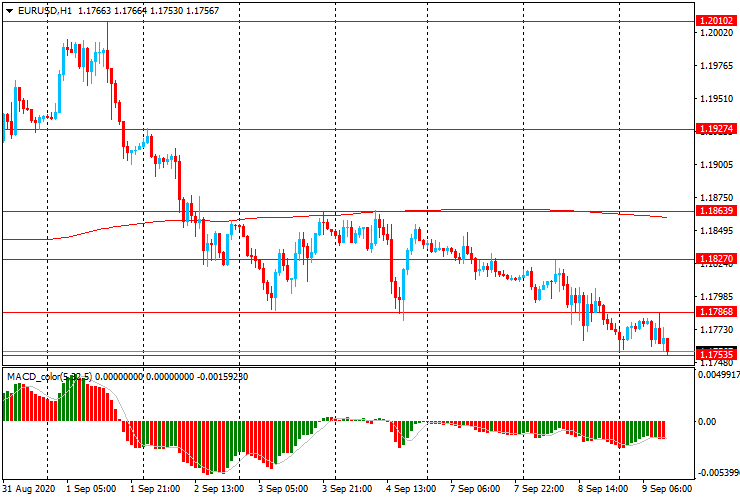 ЕUR/USD: пара торгуется в диапазоне $1.1755-85 и пытается пробить сильный уровень поддержки $1.1755 (минимум 21 августа).